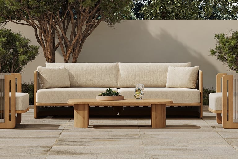 Inspired by the organic rhythm of ocean waves, the KUBU Sofa brings a serene, sculptural elegance to your outdoor sanctuary.