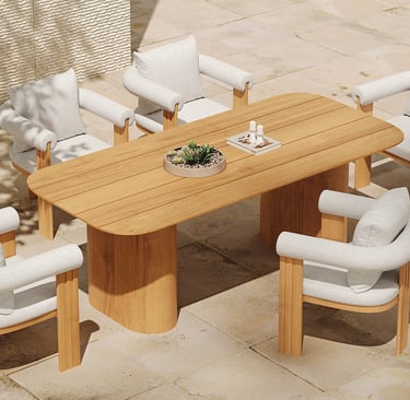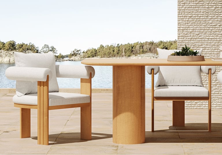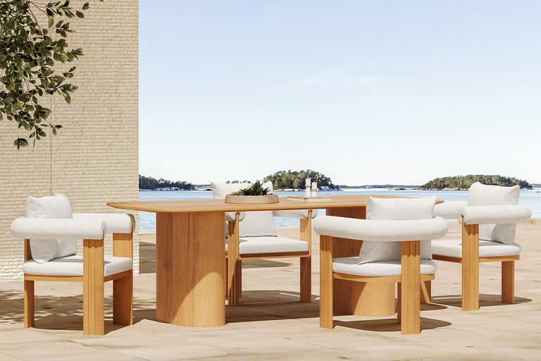 The Sumba Dining Set brings a serene, otherworldly charm to your outdoor sanctuary. Defined by a minimalist and elegant silhouette, it creates a harmonious space where refined design meets the raw beauty of nature. Perfectly balanced for comfort, the Sumba Series transforms any terrace into an inviting retreat for sophisticated outdoor living.