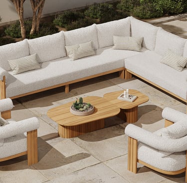 The SUMBA Infinity Sofa brings a serene, otherworldly charm to your outdoor sanctuary. Defined by an expansive, architectural silhouette, this grand sectional creates a harmonious landscape where refined design meets the raw beauty of nature.